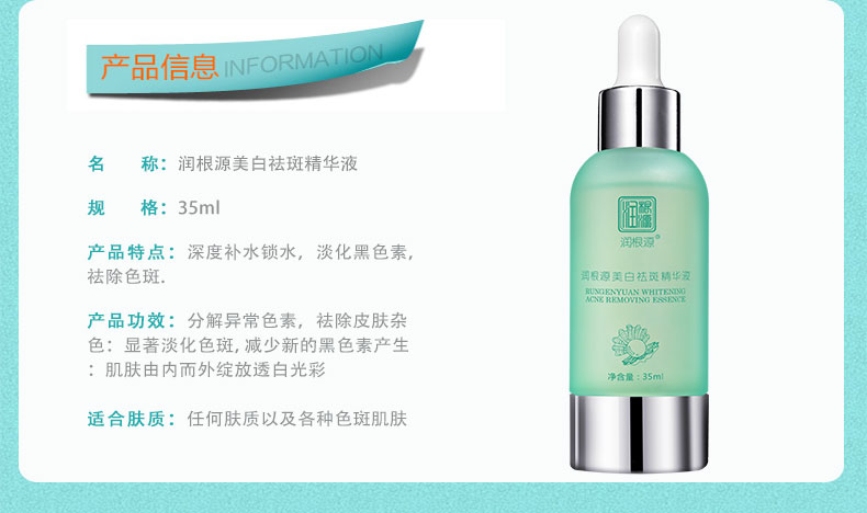 產(chǎn)品名稱: 潤(rùn)根源美白祛斑精華液