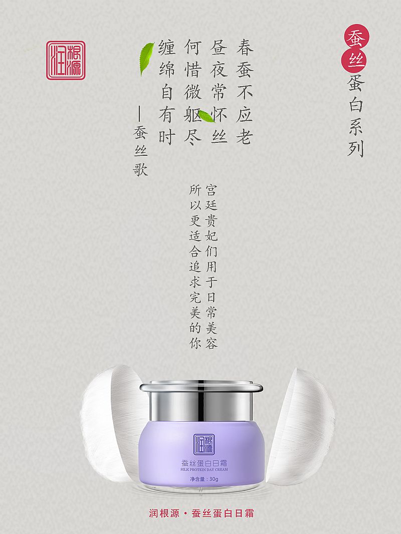 | 產(chǎn)品名稱 | 潤根源蠶絲蛋白日霜 |