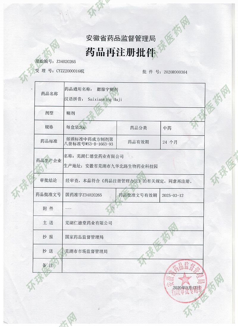 生產(chǎn)企業(yè): 蕪湖仁德堂藥業(yè)有限公司