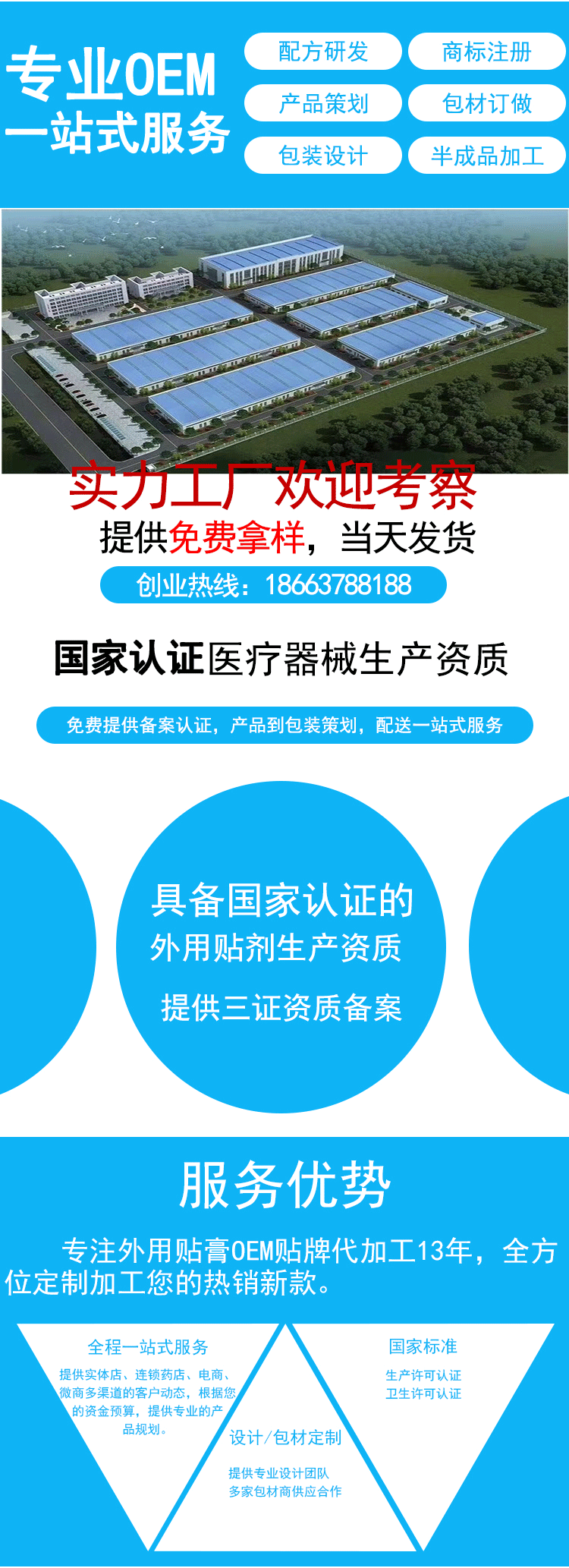 [主營產(chǎn)品]:一類械字號加工工廠 一類械字號貼牌 膏藥加工工廠 貼劑加工工廠 貼膏加工工廠 膏貼加工工廠 噴劑加工 更多>