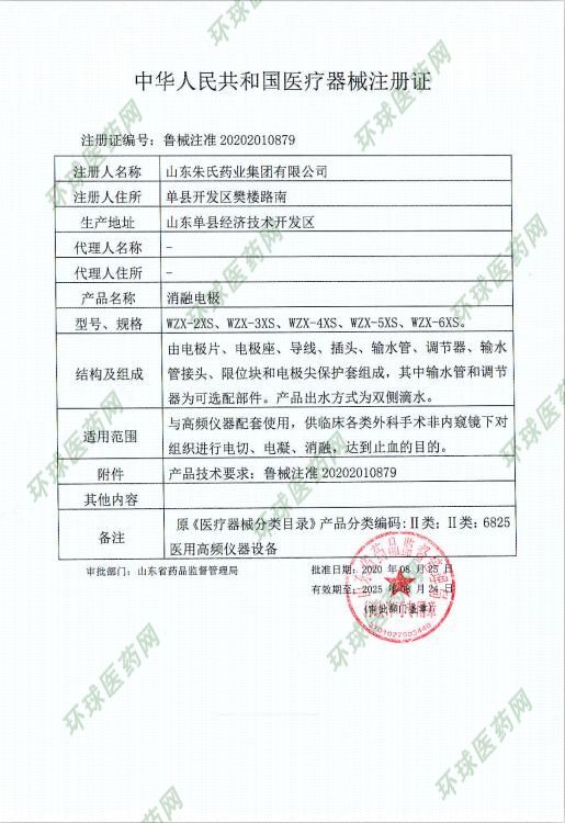 批準(zhǔn)文號: 魯械注準(zhǔn)20202010879號 【驗(yàn)證真?zhèn)?/a>】