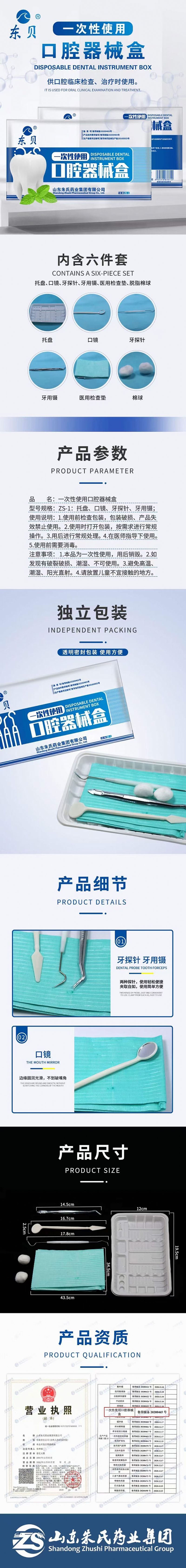 | 補充說明 | 【型號規(guī)格】 ZS-1:托盤、口鏡、牙探針、牙用鑷; ZS-2:托盤、口鏡、牙探針、牙用鑷、脫脂棉球; ZS-3:托盤、口鏡、牙探針、牙用鑷、醫(yī)用檢查墊; ZS-4:托盤、口鏡、牙探針、牙用鑷、醫(yī)用檢查墊、水槍頭; ZS-5:托盤、口鏡、牙探針、牙用鑷、醫(yī)用檢查墊、脫脂棉球; ZS-6:托盤、口鏡、牙探針、牙用鑷、醫(yī)用檢查墊、脫脂棉球、檢查手套; ZS-7:托盤、口鏡、牙探針、牙用鑷、醫(yī)用檢查墊、脫脂棉球、吸唾管; ZS-8:托盤、口鏡、牙探針、牙用鑷、醫(yī)用檢查墊、脫脂棉球、檢查手套、吸唾管; |