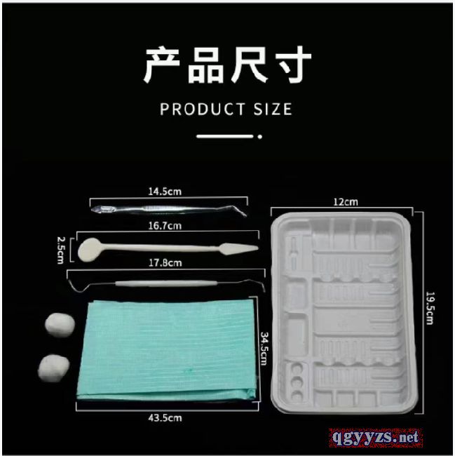 | 產(chǎn)品賣點 | 由托盤、口鏡、牙探針、牙用鑷、醫(yī)用檢查墊、脫脂棉球、檢查手套、吸唾管、水槍頭組成,非無菌提供,一次性使用。 |
