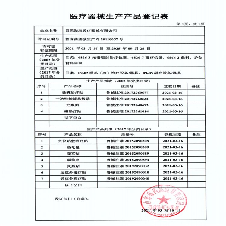 - 日照海旭醫(yī)療器械有限公司