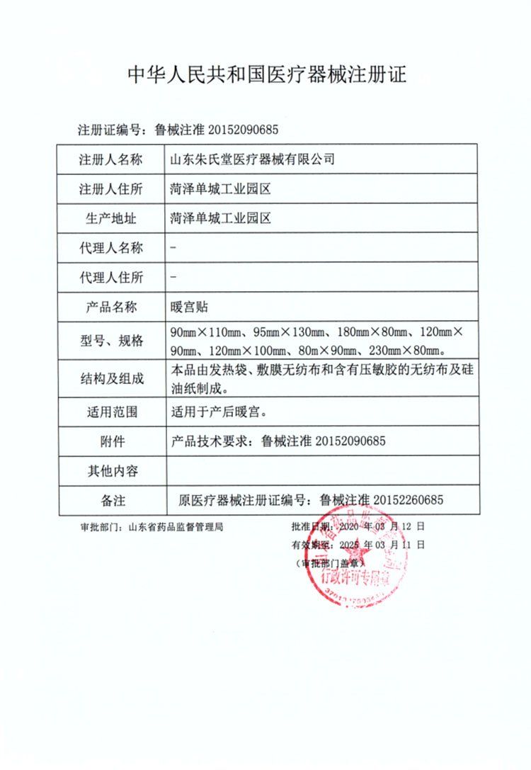 | 通用名稱 | 暖宮貼(5貼裝) |