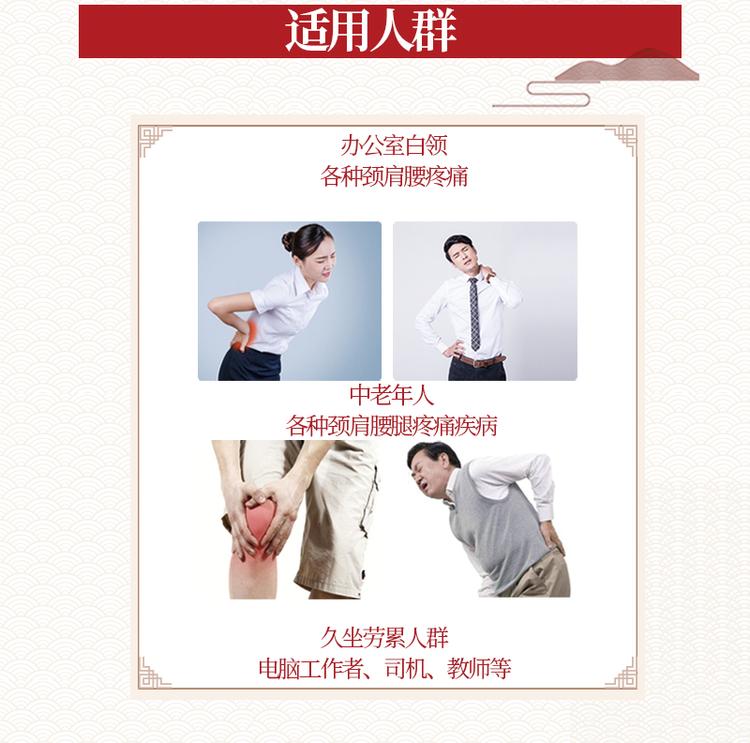 | 產(chǎn)品用途 | 用于頸椎病,肩周炎,骨質(zhì)增生,腰椎間盤突出,腰腿疼,鐵打損傷,滑膜炎,風(fēng)濕性關(guān)節(jié)炎,坐骨神經(jīng)等引起的疼痛,酸脹,麻木等。 |