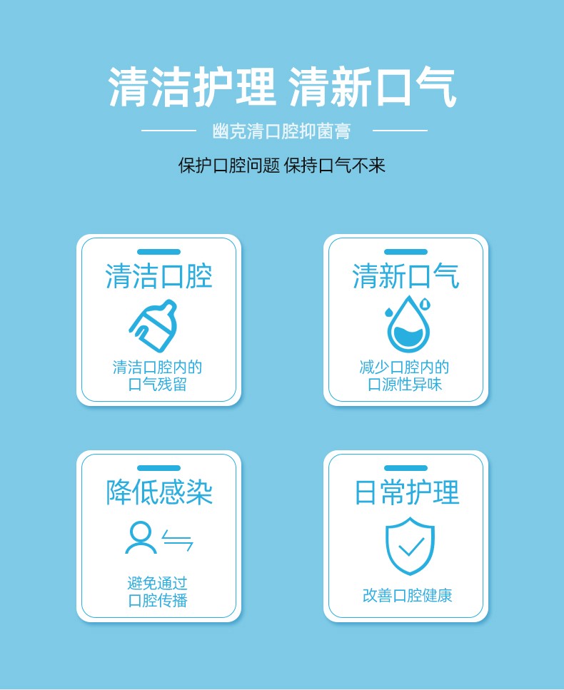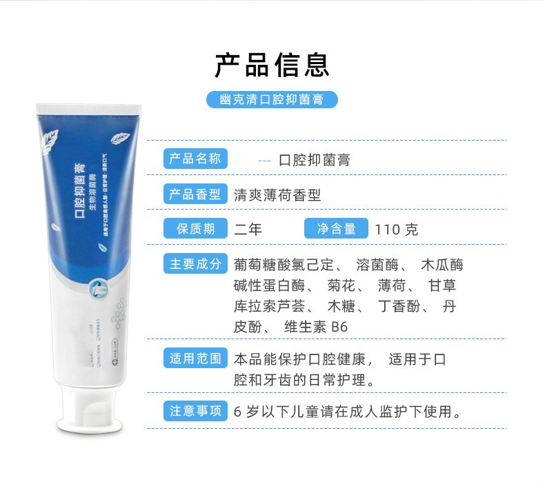 | 產(chǎn)品賣點(diǎn) | 食品級(jí)牙膏,有效抑制細(xì)菌滋生,維持口腔環(huán)境均衡,有效滅殺口腔致臭菌滋生,改善口腔環(huán)境 |