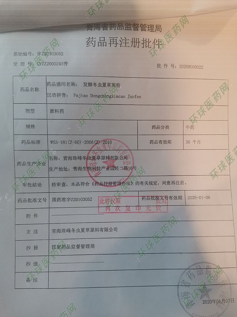 生產(chǎn)企業(yè): 青海珠峰冬蟲夏草原料有限公司