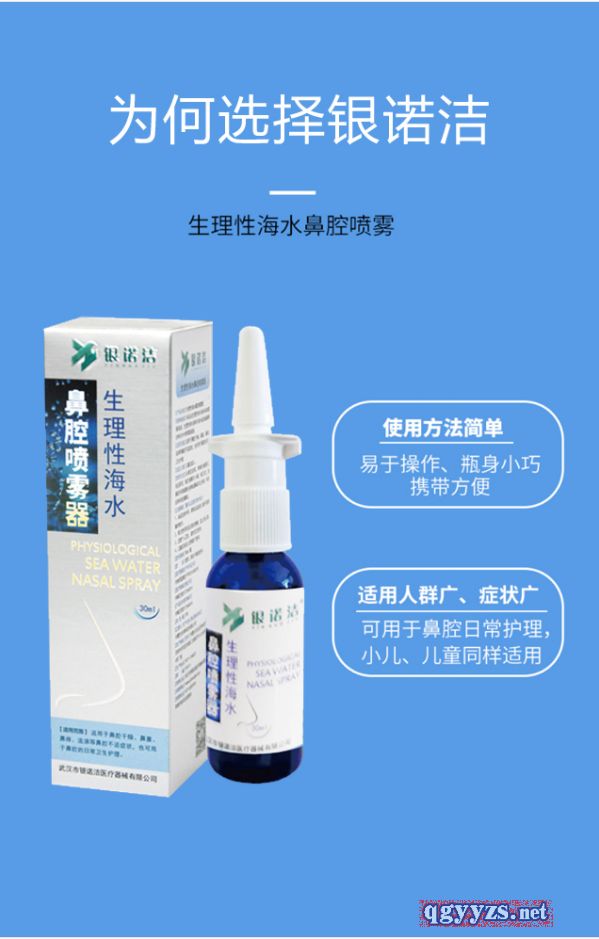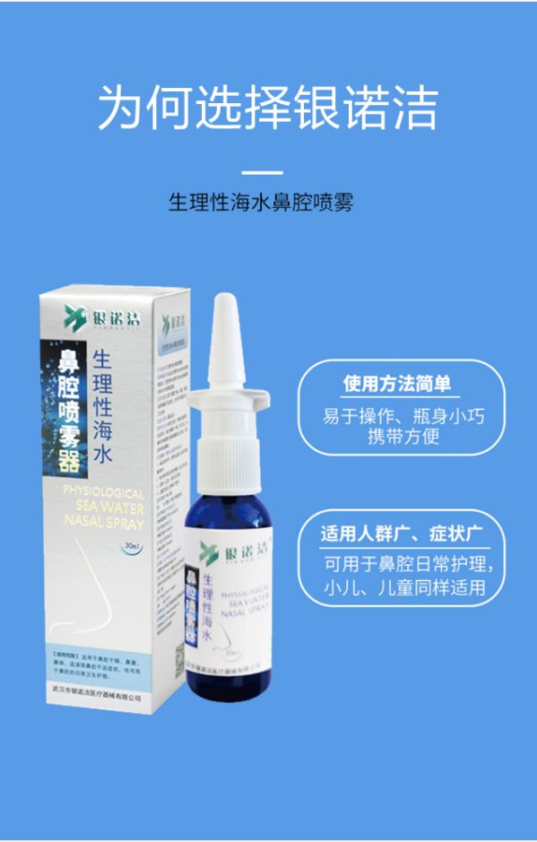 | 補(bǔ)充說明 | 產(chǎn)品性能及特點(diǎn) 銀諾潔生理性海水鼻腔噴霧器是內(nèi)蒙古東銀科技有限公司出品的一種全新的鼻腔健康產(chǎn)品,本品中生理性海水液體的滲透壓值和正常人的血漿、組織液接近,與鼻腔相容性好,可有效清洗和潤濕鼻腔,改善鼻腔生理功能環(huán)境,是一種有效的鼻腔健康產(chǎn)品。 1、 銀領(lǐng)生理性海水鼻腔噴霧器可為人體提供所需的礦物質(zhì)和海水微量元素。修正鼻腔PH值,清潔和濕潤鼻腔,改善鼻腔生理功能環(huán)境,恢復(fù)鼻腔粘膜分泌功能及纖毛運(yùn)動(dòng),提高鼻腔免疫力。 2、銀領(lǐng)生理性海水鼻腔噴霧器是生理性海水提取液,不含藥物、不含激素。 3、恢復(fù)鼻腔自動(dòng)分泌及清潔功能,銀領(lǐng)生理性海水鼻腔噴霧器能幫助鼻腔分泌功能自動(dòng)恢復(fù)正常。讓我們來看一下是如何發(fā)揮這種功效--當(dāng)適當(dāng)?shù)膲毫εc微米級的水霧體沖洗鼻腔時(shí),鼻纖毛根部的臟物會(huì)經(jīng)沖洗被帶走,使長期伏倒的鼻纖毛能脫離糾結(jié)的臟物“站立”起來,恢復(fù)鼻腔粘膜分泌粘液及纖毛運(yùn)動(dòng)的正常功能,并可保持鼻腔濕潤,恢復(fù)鼻粘液的正常PH值。 |