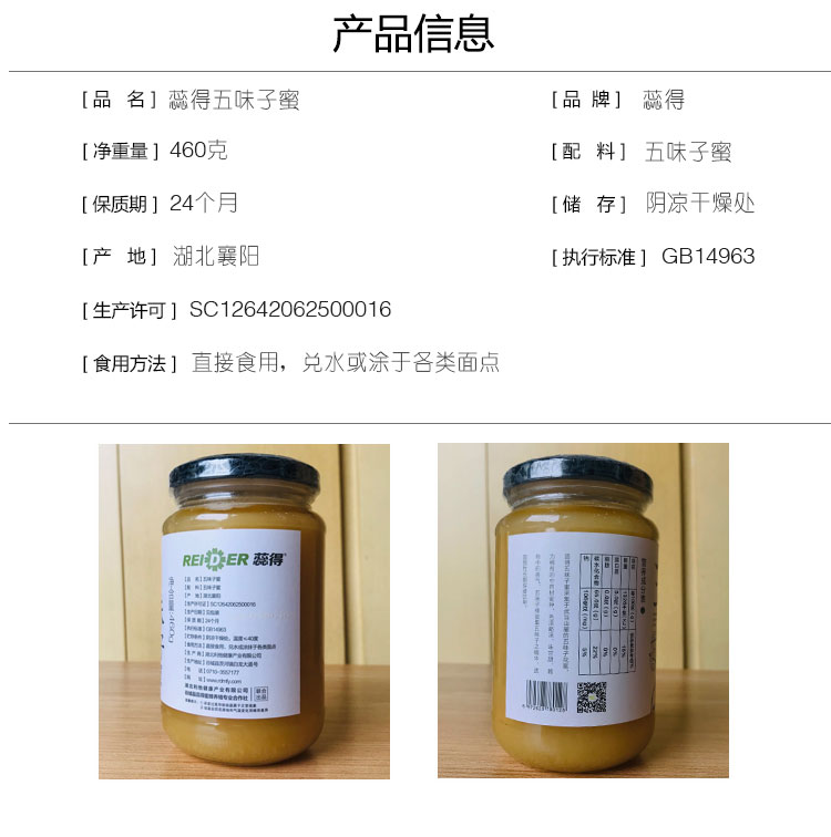 | 產(chǎn)品名稱 | 蕊得五味子蜂蜜 |