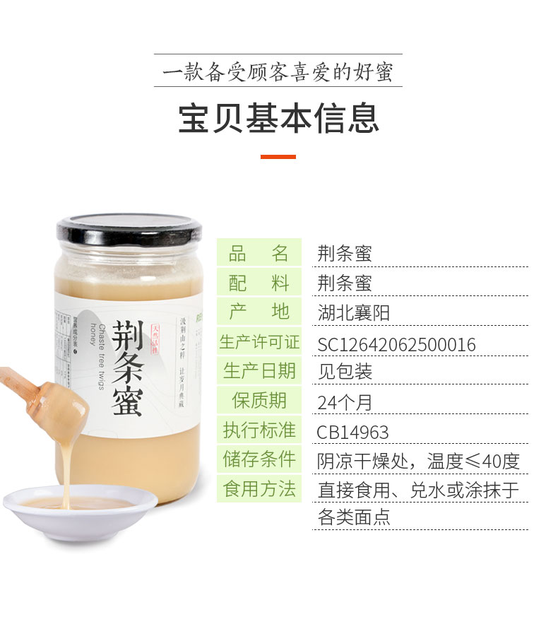 產(chǎn)品名稱: 蕊得蜂蜜天然活性結(jié)晶荊條蜜