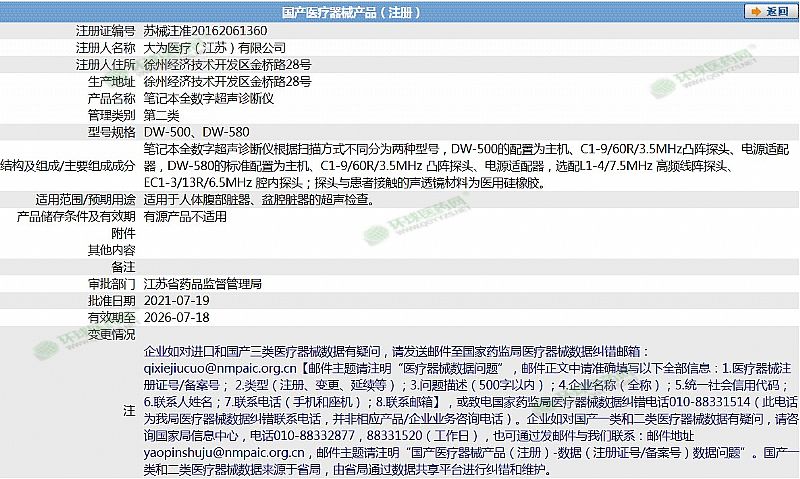生產(chǎn)企業(yè): 大為醫(yī)療(江蘇)有限公司
