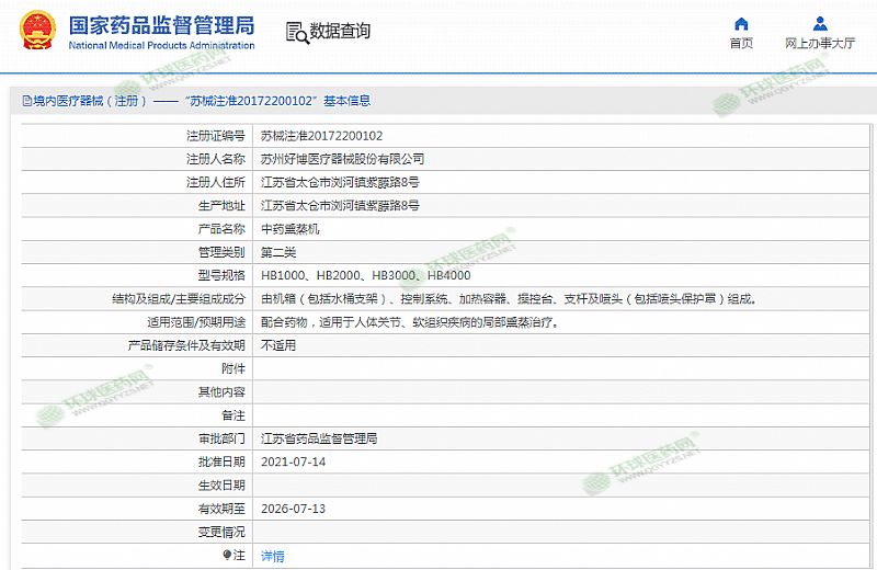 批準(zhǔn)文號: 蘇械注準(zhǔn)20172200102 【驗證真?zhèn)?/a>】