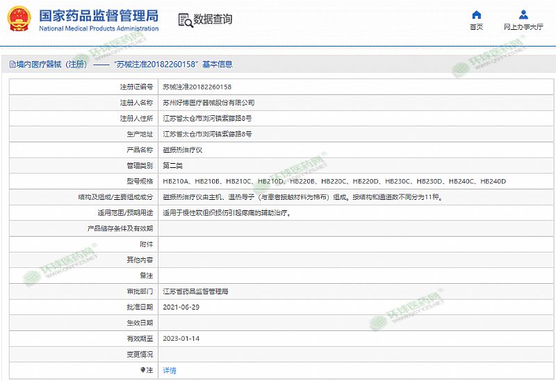 批準文號: 蘇械注準20182260158 【驗證真?zhèn)?/a>】