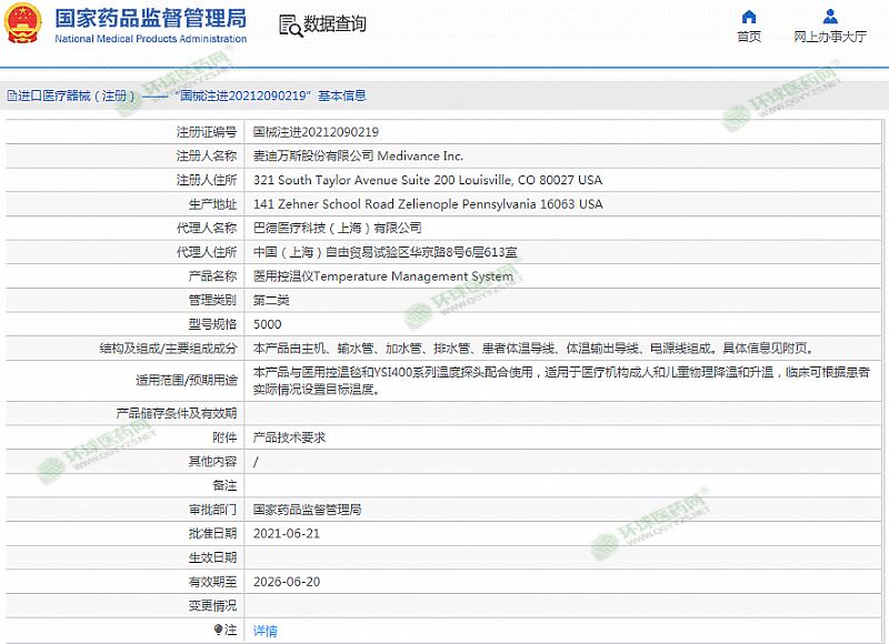 生產(chǎn)企業(yè): 麥迪萬(wàn)斯股份有限公司 Medivance Inc.