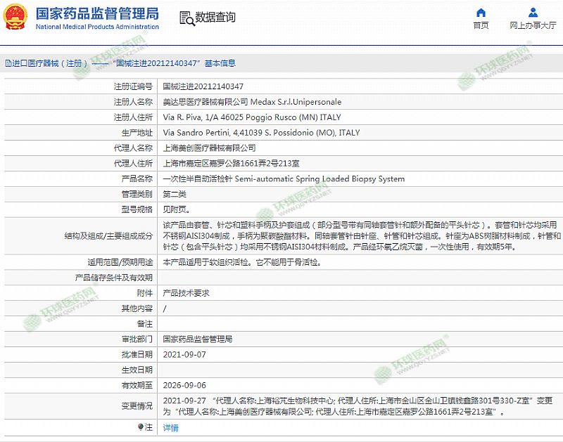 | 產(chǎn)品用途 | 本產(chǎn)品適用于軟組織活檢。它不能用于骨活檢。 有效期至 2026-09-06 |