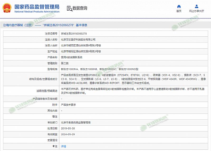 生產(chǎn)企業(yè): 北京萬東醫(yī)療科技股份有限公司