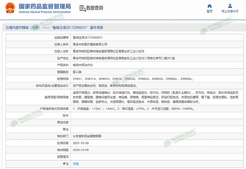批準文號: 魯械注準20172090031 【驗證真?zhèn)?/a>】