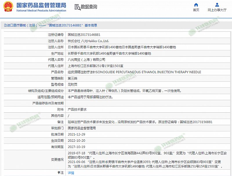 | 主要成分 | 本產(chǎn)品是由誘導針、注入針(帶側孔)及延長管組成。環(huán)氧乙烷滅菌,一次性使用。 有效期至 2027-10-19 |