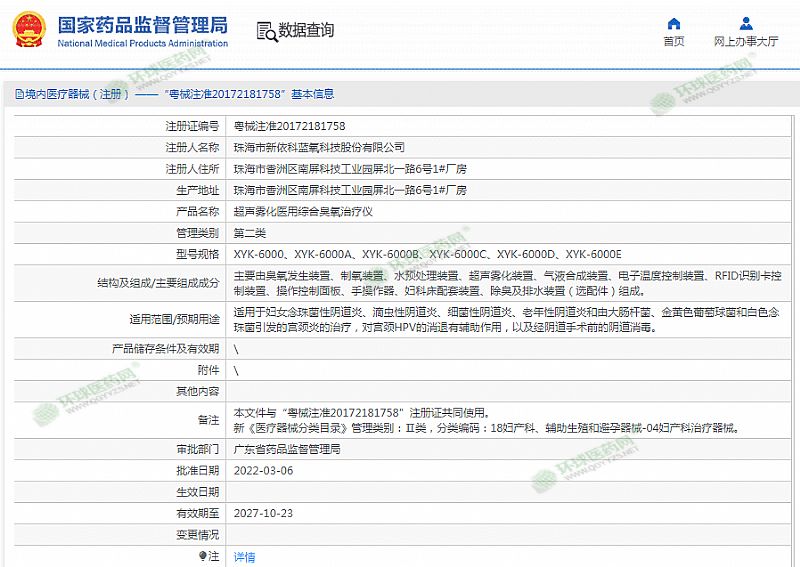 生產企業(yè): 珠海市新依科藍氧科技股份有限公司