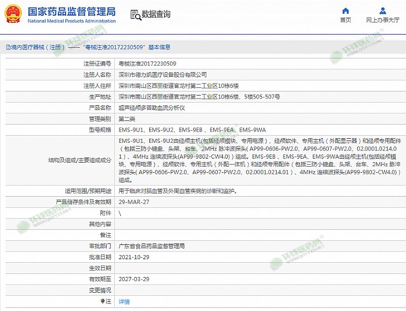 | 補(bǔ)充說明 | 神經(jīng)內(nèi)科、神經(jīng)外科、重癥監(jiān)護(hù)室、功能檢查科、體檢科等。 有效期至 2027-03-29 |