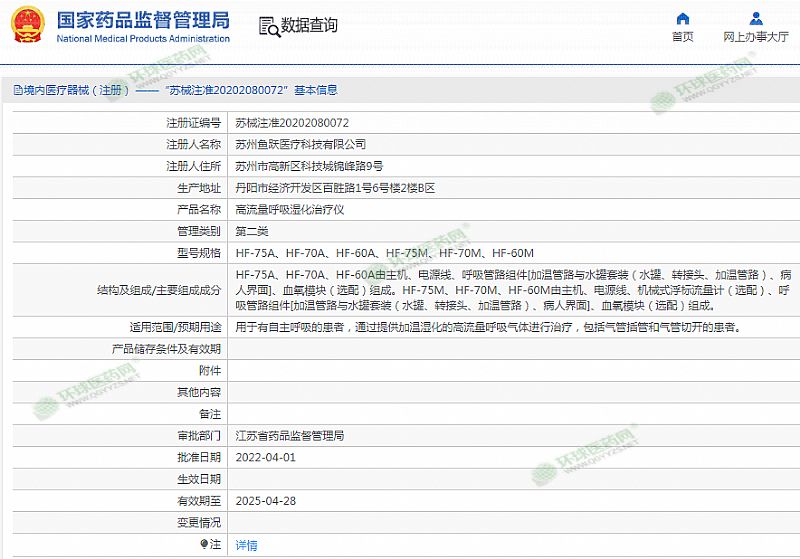 | 產(chǎn)品用途 | 用于有自主呼吸的患者,通過提供加溫濕化的高流量呼吸氣體進行治療,包括氣管插管和氣管切開的患者。 有效期至 2025-04-28 |