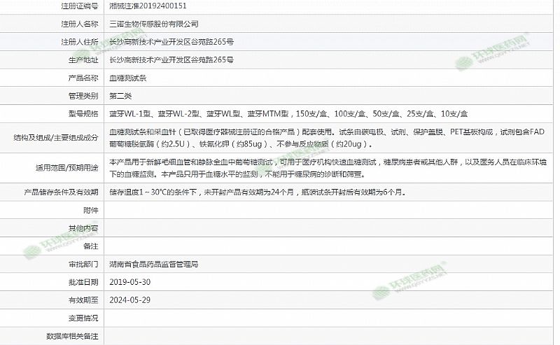 生產(chǎn)企業(yè): 三諾生物傳感股份有限公司