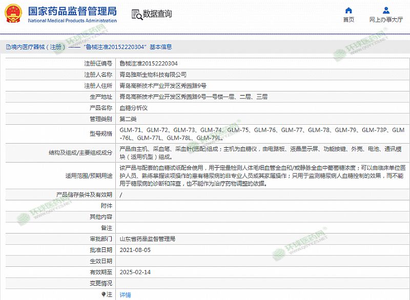 | 產(chǎn)品用途 | 本產(chǎn)品適用于***庭以及醫(yī)療機(jī)構(gòu)體外監(jiān)測(cè)人體末梢全血或靜脈全血中葡萄糖的含量。本產(chǎn)品只適用于監(jiān)測(cè)糖尿病人血糖控制的效果,不能用于糖尿病的診斷和篩查,也不能作為治療藥物調(diào)整的依據(jù)。 有效期至 2025-02-14 |
