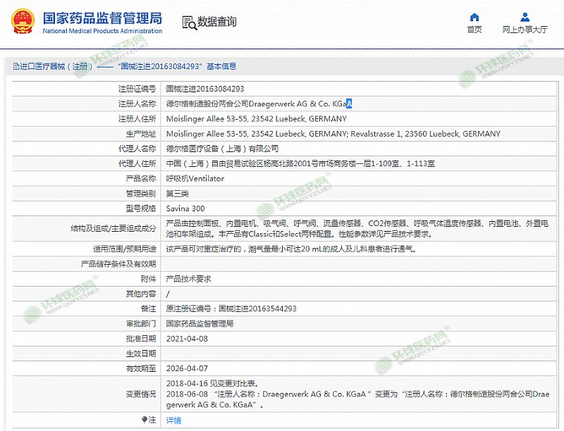 生產(chǎn)企業(yè): 德爾格制造股份兩合公司Draegerwerk AG & Co. KGaA