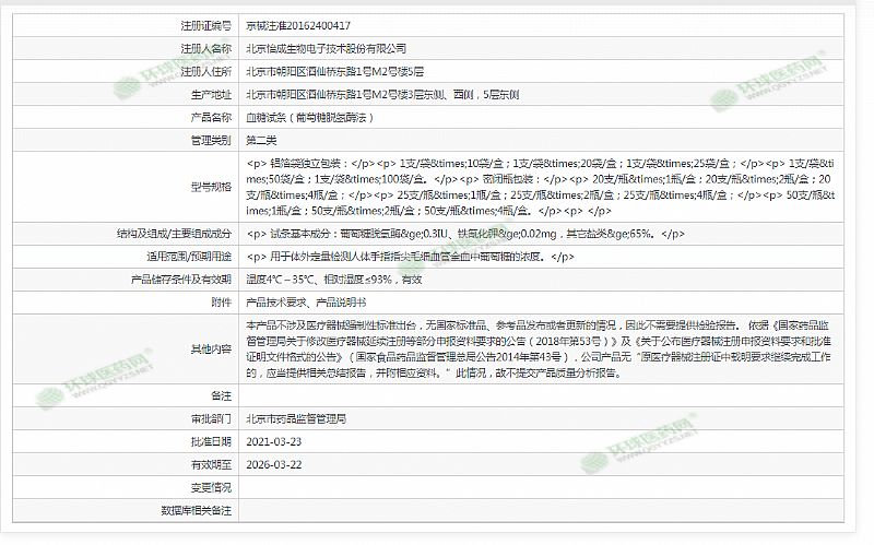 | 主要成分 | 試條基本成分:葡萄糖脫氫酶≥0.3IU、鐵氰化鉀≥0.02mg,其它鹽類≥65%。 |