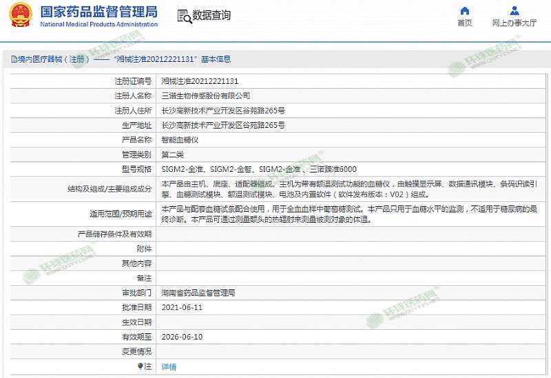 生產(chǎn)企業(yè): 三諾生物傳感股份有限公司