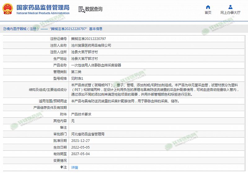 | 產(chǎn)品規(guī)格 | 一次性使用人體靜脈血樣采集容器 |