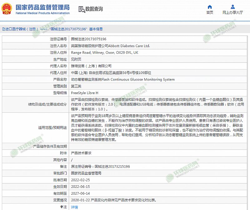 生產(chǎn)企業(yè): 英國雅培糖尿病護(hù)理公司Abbott Diabetes Care Ltd.