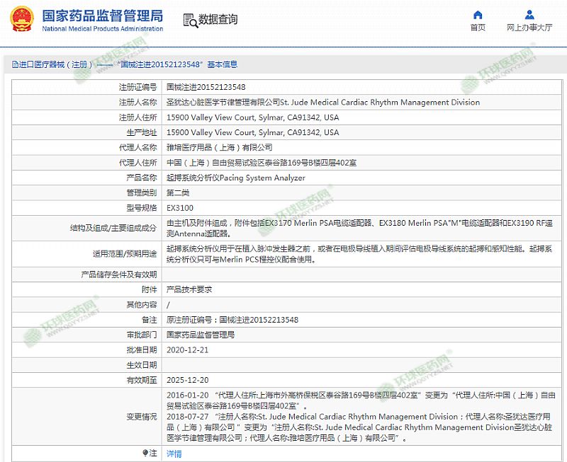 生產企業(yè): 圣猶達心臟醫(yī)學節(jié)律管理有限公司St. Jude Medical Cardiac Rhythm Man