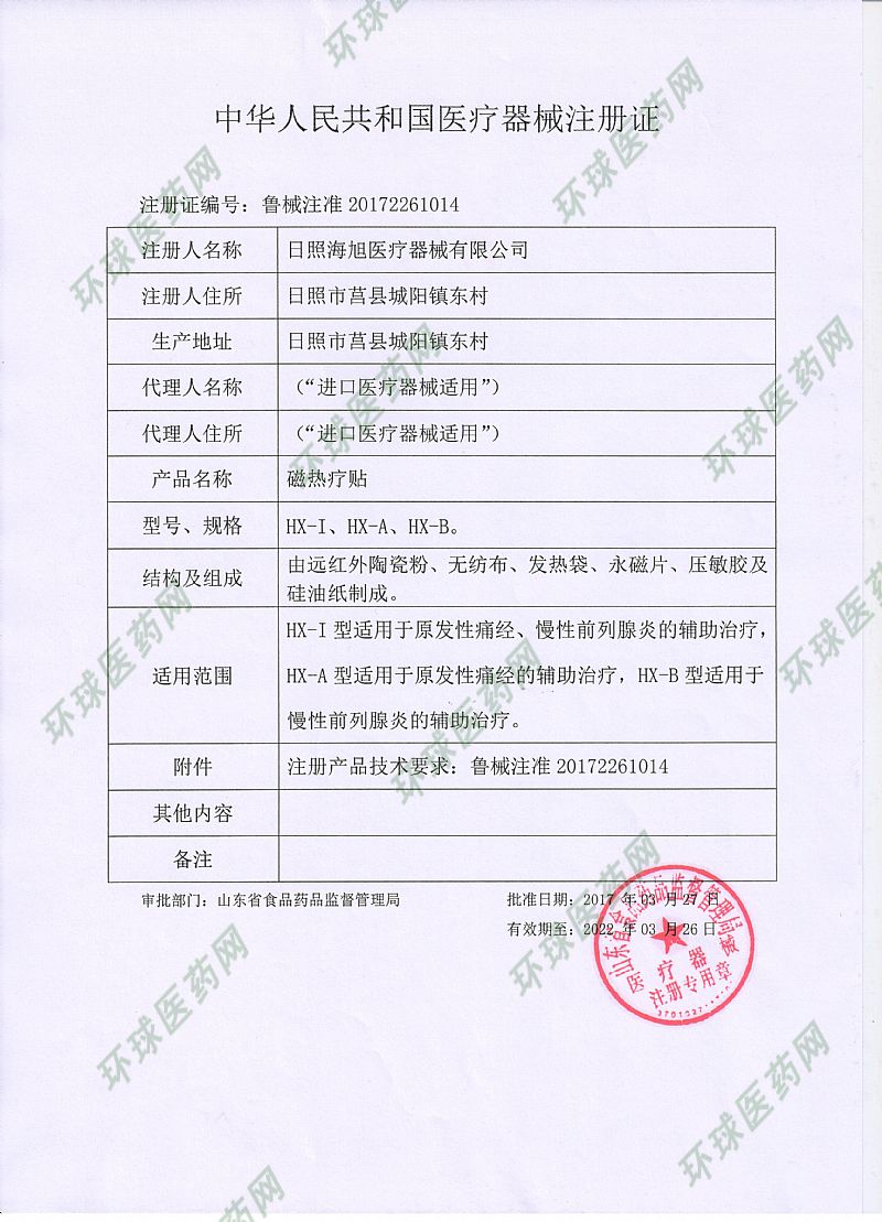 生產(chǎn)企業(yè): 日照海旭醫(yī)療器械有限公司