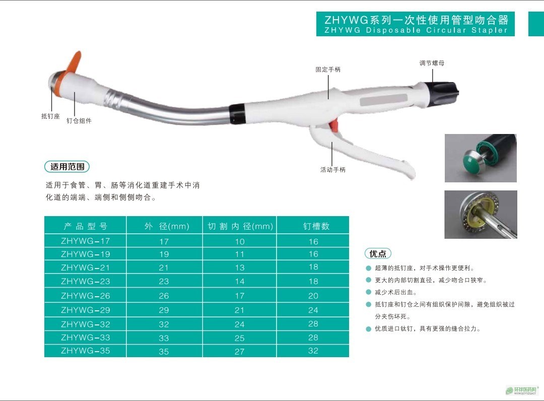| 產(chǎn)品賣點 | 1超薄的抵釘座,對手術(shù)操作更便利2更大的內(nèi)部切割直徑,減少吻合口狹窄。3減少售后出血.4抵釘座和釘倉之間有組織保護(hù)間隙,避免組織被過分夾傷壞死。5優(yōu)質(zhì)進(jìn)口鈦釘,具有更將的縫合拉力。 |