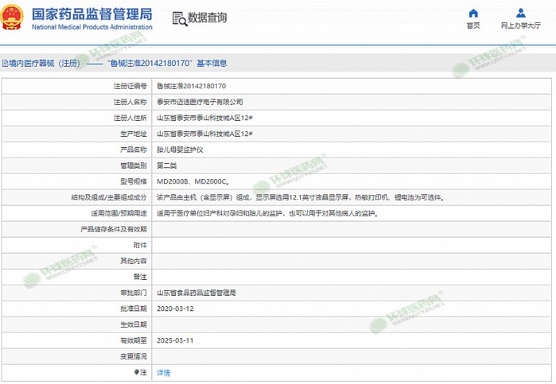 生產(chǎn)企業(yè): 泰安市邁迪醫(yī)療電子有限公司