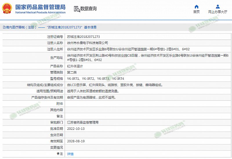 批準(zhǔn)文號: 蘇械注準(zhǔn)20182071273 【驗(yàn)證真?zhèn)?/a>】