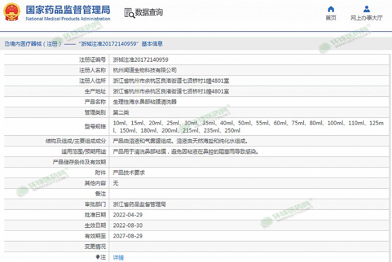 | 產(chǎn)品用途 | 產(chǎn)品用于清洗鼻部粘膜,避免因粘液在鼻腔的阻塞而導(dǎo)致感染。 有效期至 2027-08-29 |