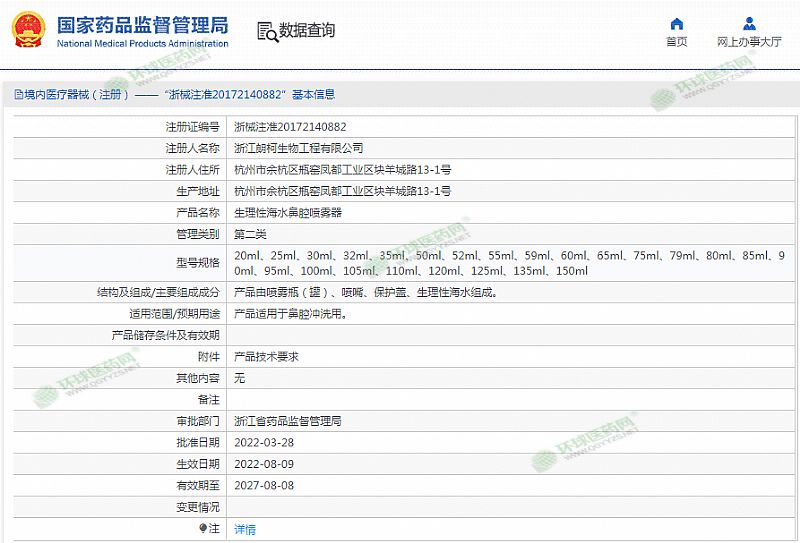 批準(zhǔn)文號(hào): 浙械注準(zhǔn)20172140882 【驗(yàn)證真?zhèn)?/a>】