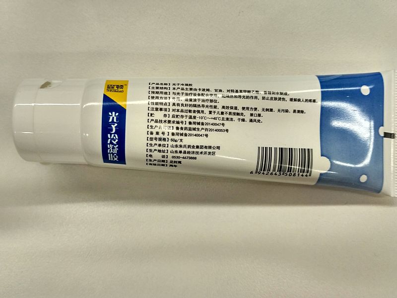 | 產(chǎn)品用途 | 【產(chǎn)品名稱】光子冷凝膠 【型號(hào)規(guī)格】50g/支 【產(chǎn)品描述】本產(chǎn)品主要由卡波姆、甘油、對(duì)羥基苯甲酸乙酯、香精和水制成。 【預(yù)期用途】與光子治療設(shè)備配合使用,起隔熱和導(dǎo)光的作用。 【注意事項(xiàng)】1、皮膚有炎癥、創(chuàng)面禁用;對(duì)本品過敏者慎用; 2、在使用中如果發(fā)生紅斑、濕疹,立即停用,紅斑、濕疹自行消失。 【性能特點(diǎn)】具有良好的隔熱導(dǎo)光性能,高效保濕,使用方便、***、無(wú)污染、易清除。 【貯存】應(yīng)貯存于溫度-10℃+40℃具清潔、干燥、通風(fēng)處。 |