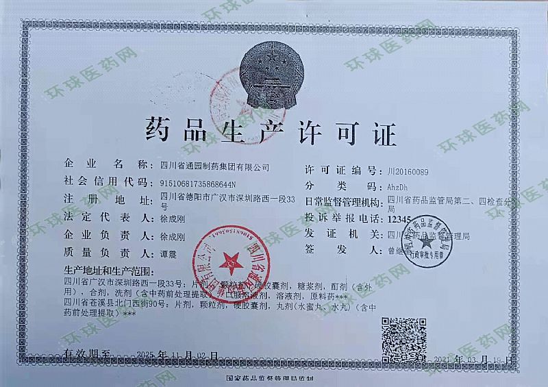 生產(chǎn)企業(yè): 四川省通園制藥有限公司