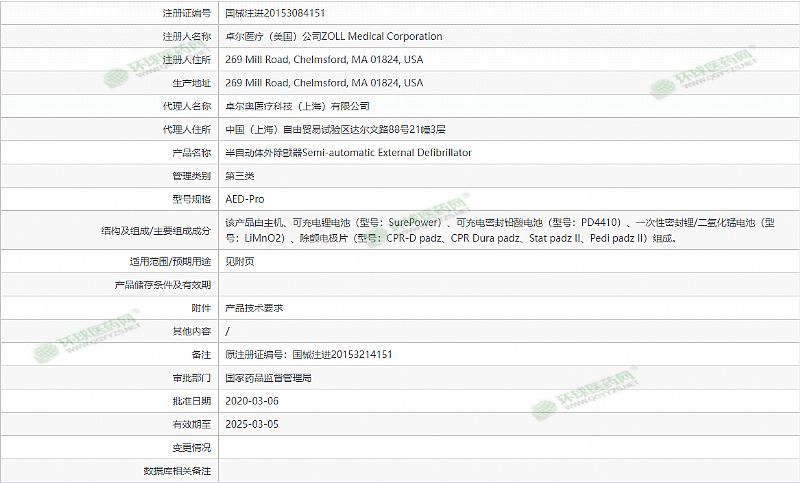 生產(chǎn)企業(yè): 卓爾醫(yī)療(美國(guó))公司ZOLL Medical Corporation