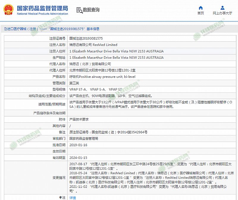 生產(chǎn)企業(yè): 瑞思邁有限公司 ResMed Limited