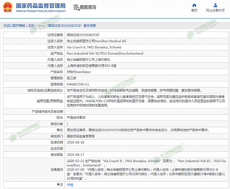 生產(chǎn)企業(yè): 瑞士哈美頓醫(yī)療公司Hamilton Medical AG