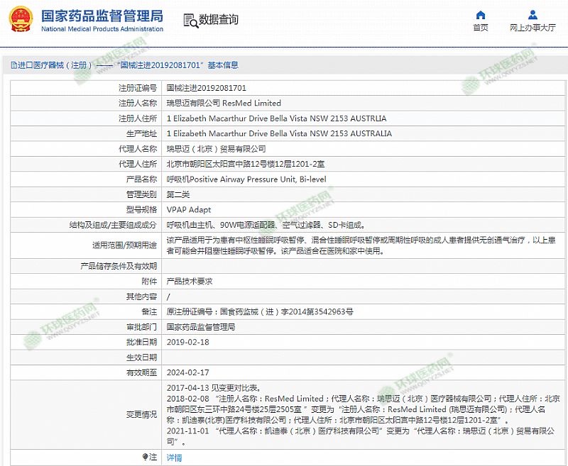 生產(chǎn)企業(yè): 瑞思邁有限公司 ResMed Limited