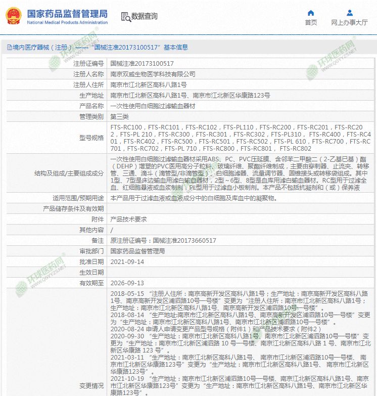 | 補(bǔ)充說明 | 結(jié)構(gòu)及組成/主要組成成分 一次性使用白細(xì)胞過濾輸血器材采用ABS、PC、PVC壓延膜、含鄰苯二甲酸二(2-乙基己基)酯(DEHP)增塑的PVC醫(yī)用高分子粒料、玻璃纖維、聚酯纖維制成,主要由穿刺器、止流夾、轉(zhuǎn)移管、三通、滴斗、白細(xì)胞濾器、流量調(diào)節(jié)器、圓錐接頭或轉(zhuǎn)移袋組成。其中1型是床邊輸血用濾白輸血器材,2型~5型是血庫用濾白輸血器材。RC型用于過濾全血、紅細(xì)胞懸液或血漿制劑,PL型用于過濾血小板制劑。本產(chǎn)品不包括抗凝劑和(或)保養(yǎng)液。 |