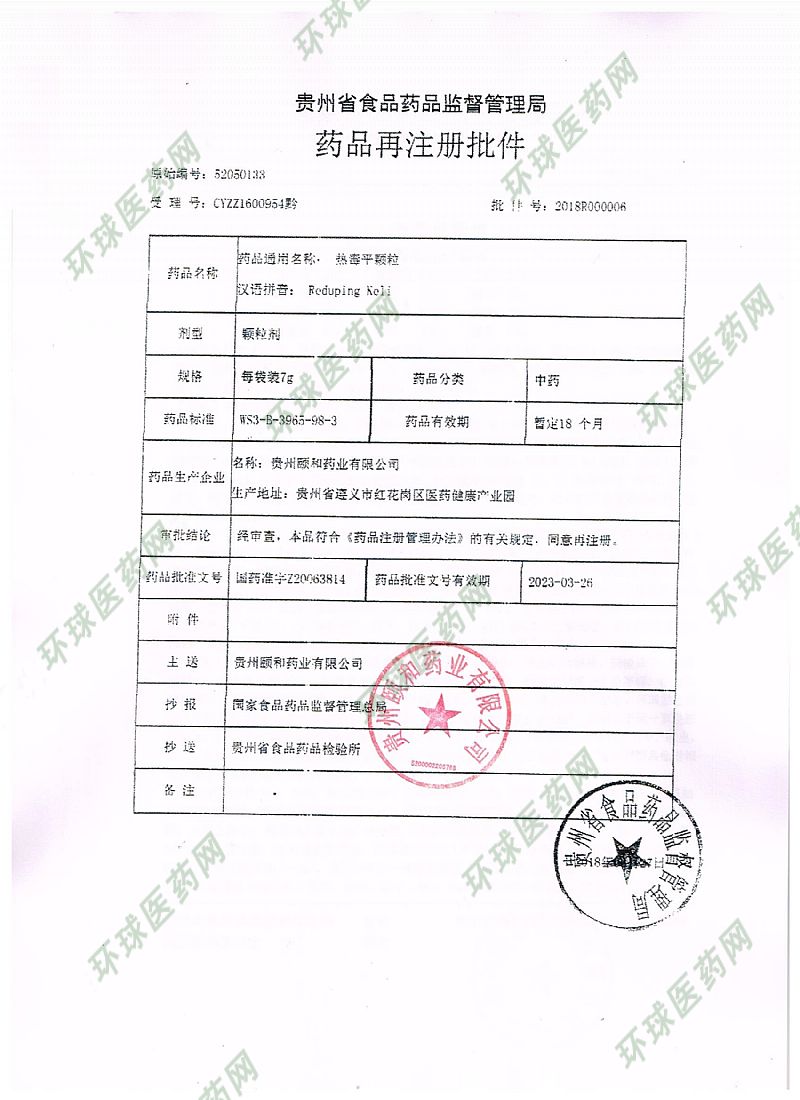 | 通用名稱 | 熱毒平顆粒 |