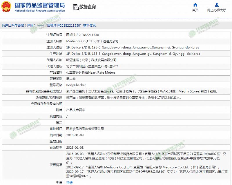 | 產(chǎn)品用途 | 該產(chǎn)品可測(cè)量患者的脈搏率,用于分析患者的心率變異性,適用于17歲以上的成人。 有效期至 2023-01-08 |
