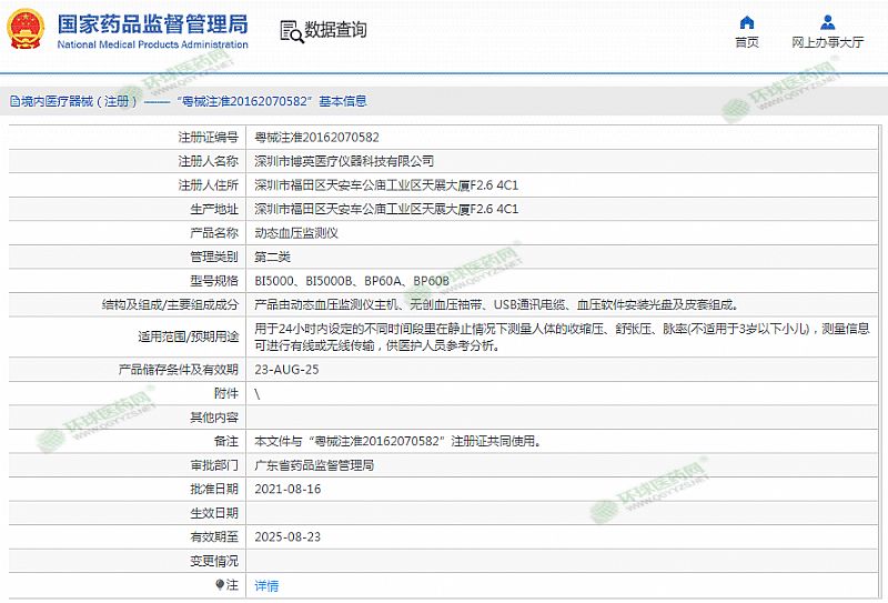 | 產(chǎn)品用途 | 用于24小時內(nèi)設定的不同時間段里在靜止情況下測量人體的收縮壓、舒張壓、脈率(不適用于3歲以下小兒),測量信息可進行有線或無線傳輸,供醫(yī)護人員參考分析。 有效期至 2025-08-23 |